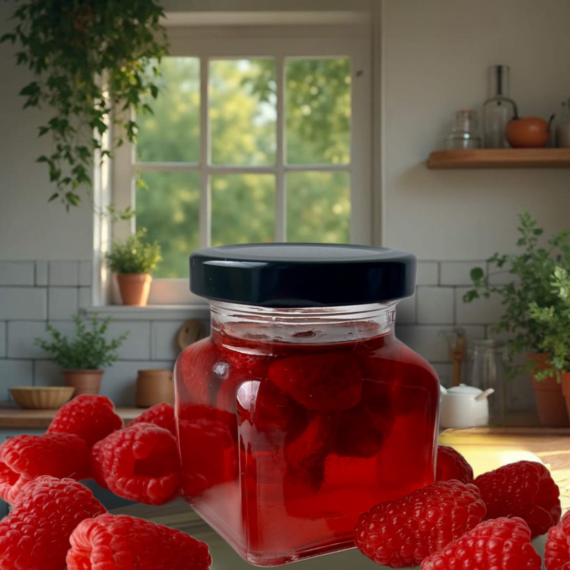 Całe maliny w syropie to 125 g smaku lata: tradycyjna receptura w ozdobnym słoiczku, w którym potem można trzymać przyprawy. Doskonały, aromatyczny dodatek do zimowej, rozgrzewającej herbaty, gorącego napoju z imbirem lub deserów!