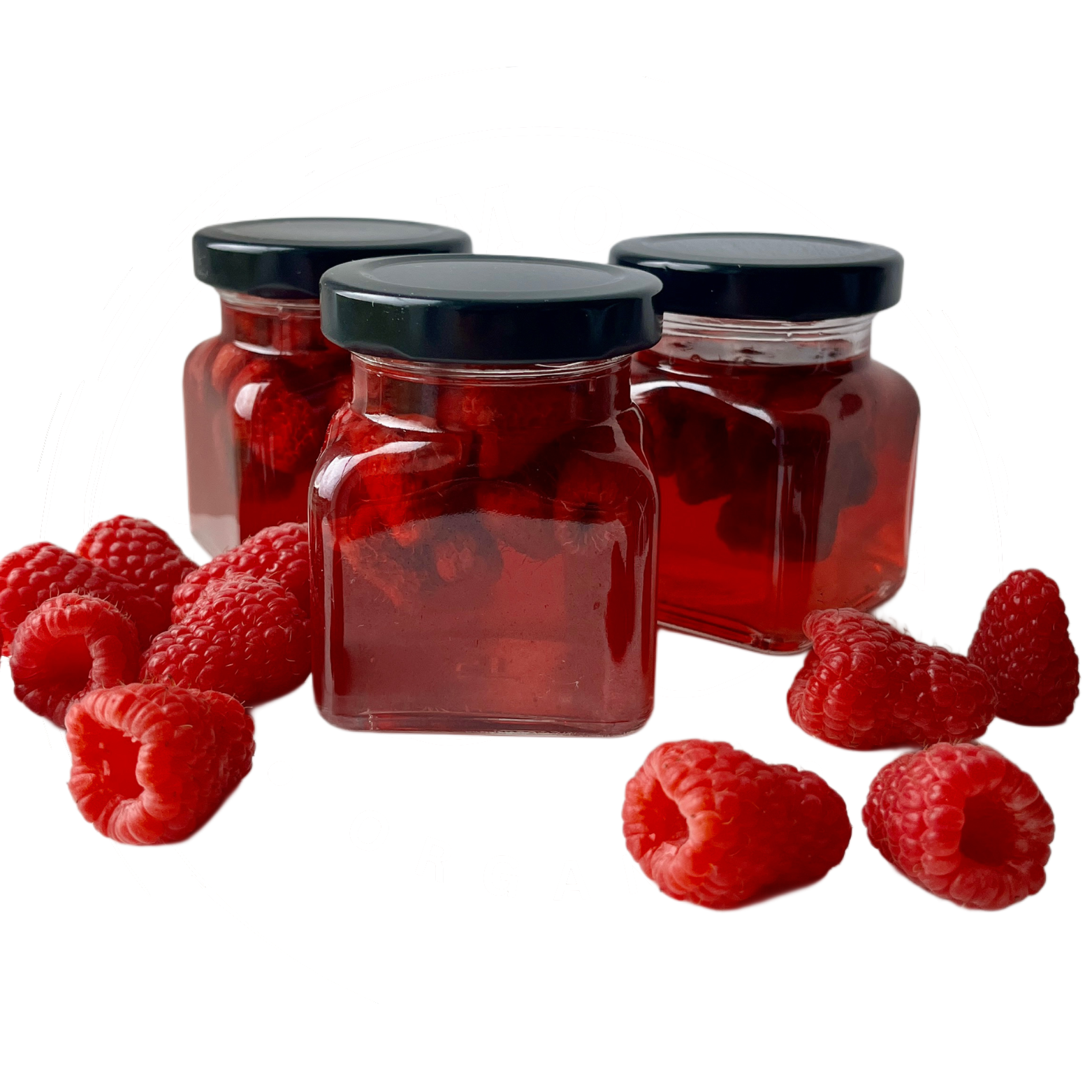 - 3 x całe owoce malin w syropie. Słoiczek to 130 g zdrowia tradycyjna metoda w ozdobnym słoiczku, w którym potem można trzymać przyprawy.